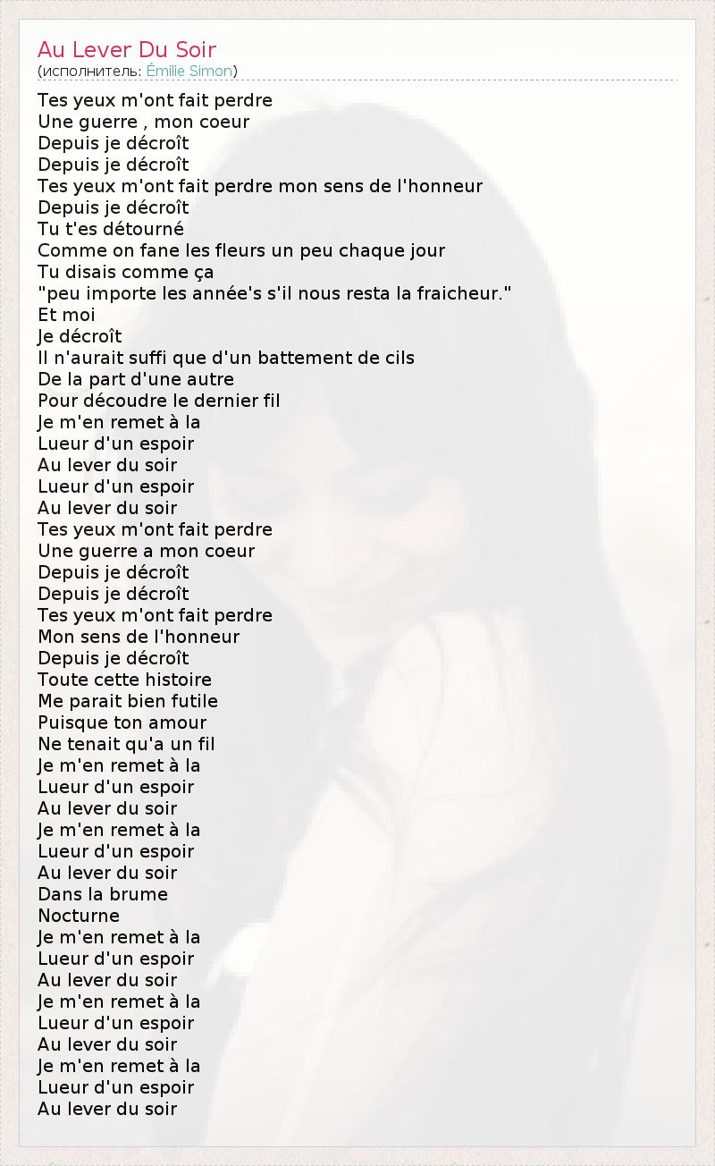 А как ты думаешь, о чем песня "Au Lever Du Soir" ?