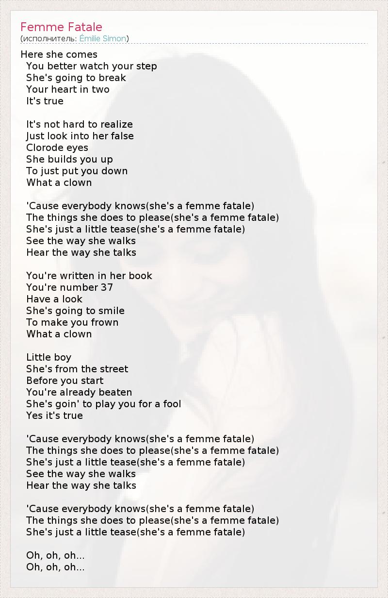 А как ты думаешь, о чем песня "Femme Fatale" ?