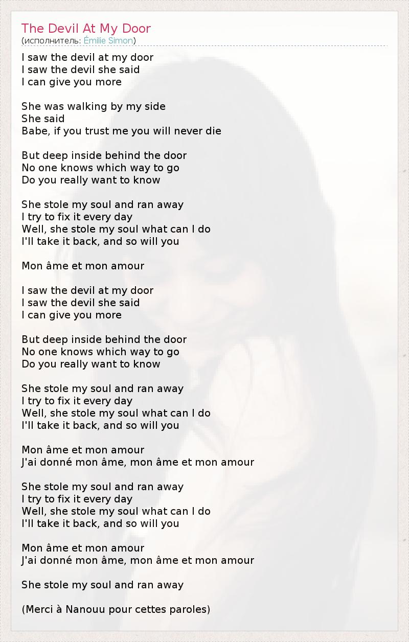 А как ты думаешь, о чем песня "The Devil At My Door" ?