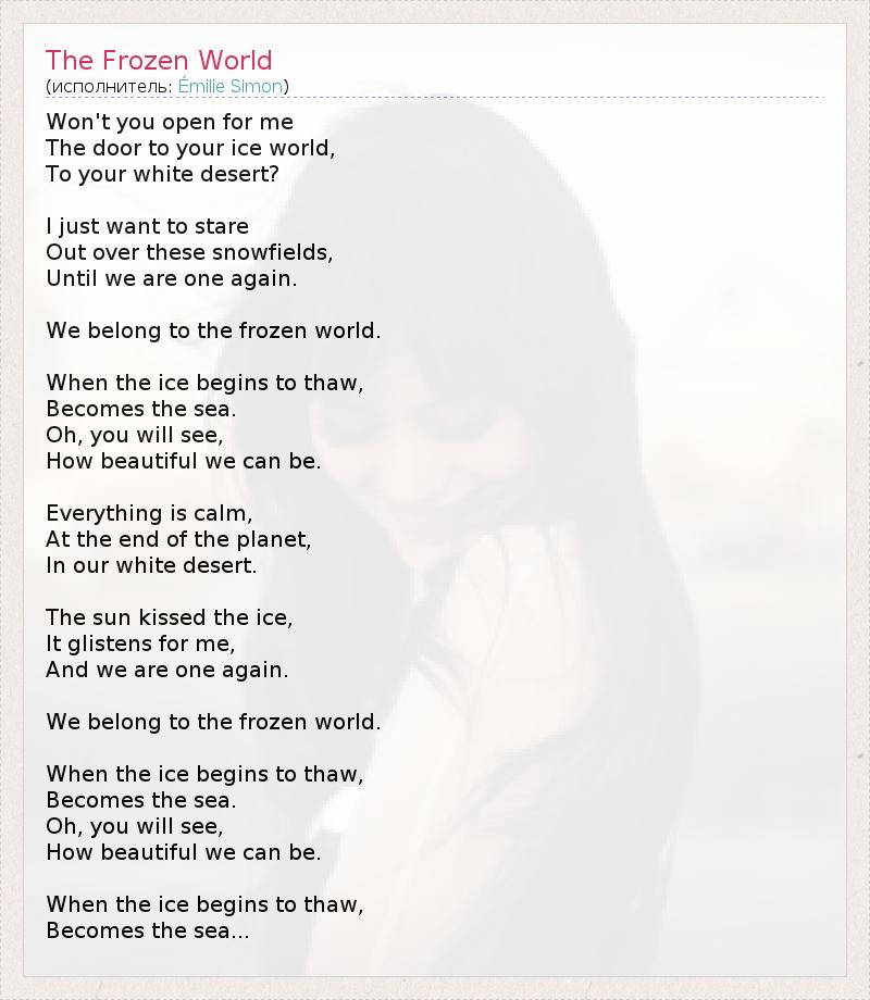 А как ты думаешь, о чем песня "The Frozen World" ?