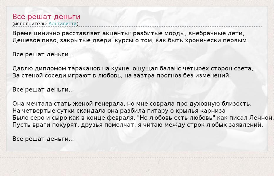 ГлавнаяИсполнителиАльтавистаВсе решат деньги