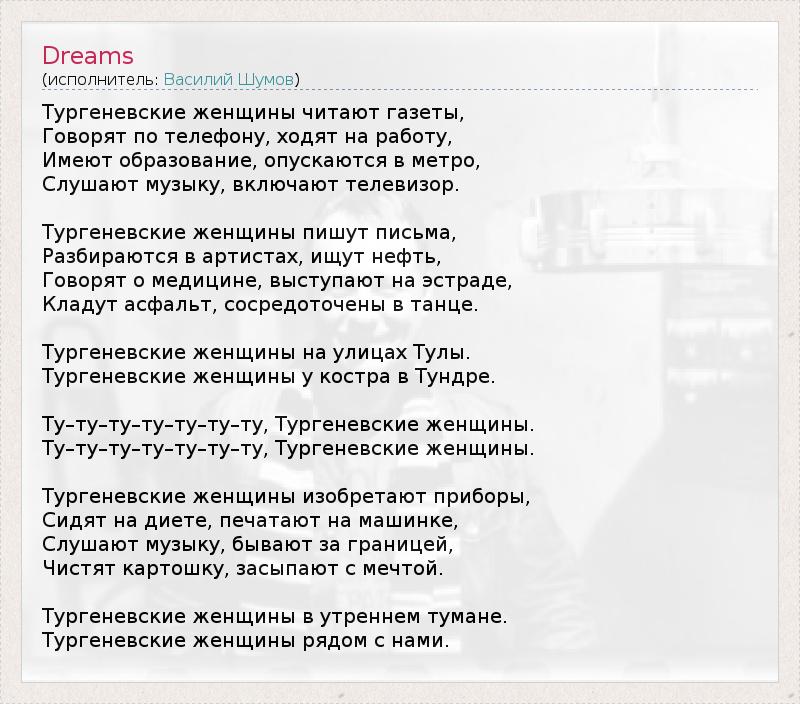 Ту–ту–ту–ту–ту–ту–ту, Тургеневские женщины.