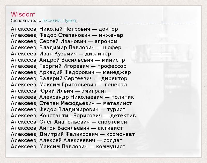Это интересно:Васи́лий Гера́рдович Шу́мов (род. 23 марта 1960 г.) — русско-американский музыкант, поэт, деятель искусcтва, режиссёр. Известен как лидер группы Центр (Москва, Лос-Анджелес)и автор проектов мультимедийного и экспериментального искуcства. Делает музыку в стилях новая волна, электронная музыка, авангард и других.В конце 1970х собрал группу «777»,... продолжение