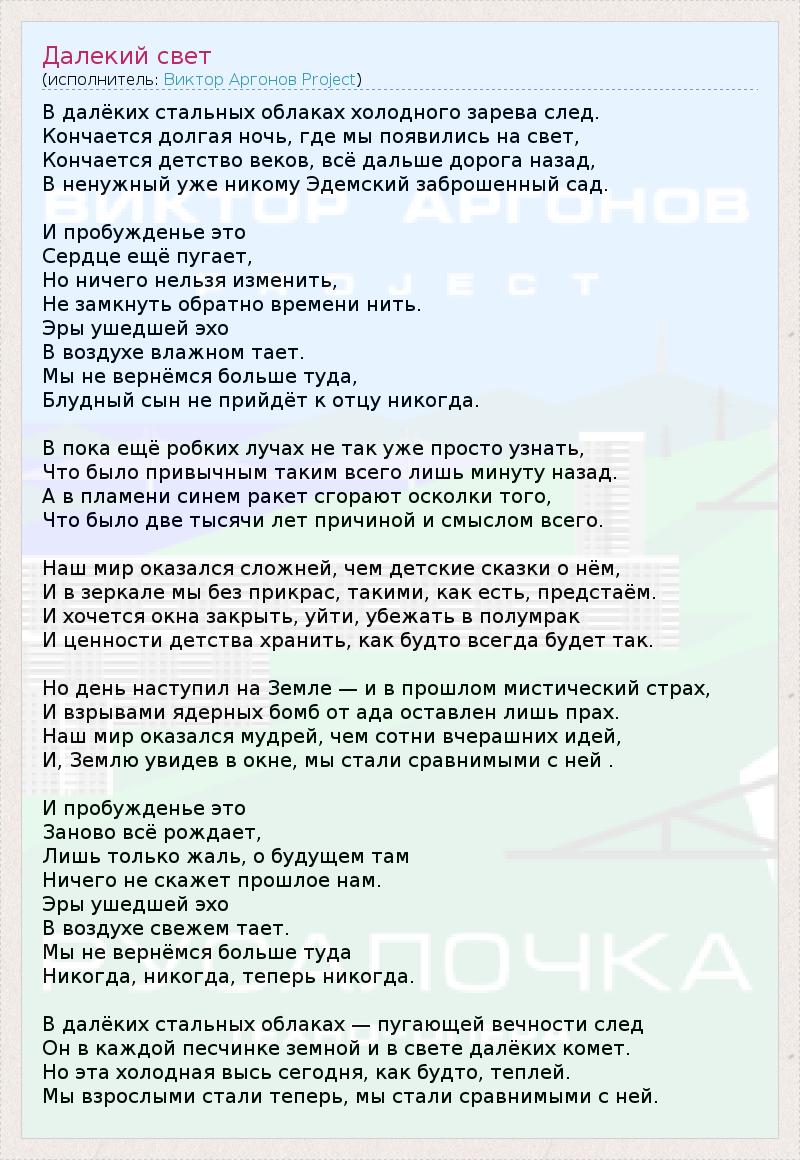 А как ты думаешь, о чем песня "Далекий свет" ?