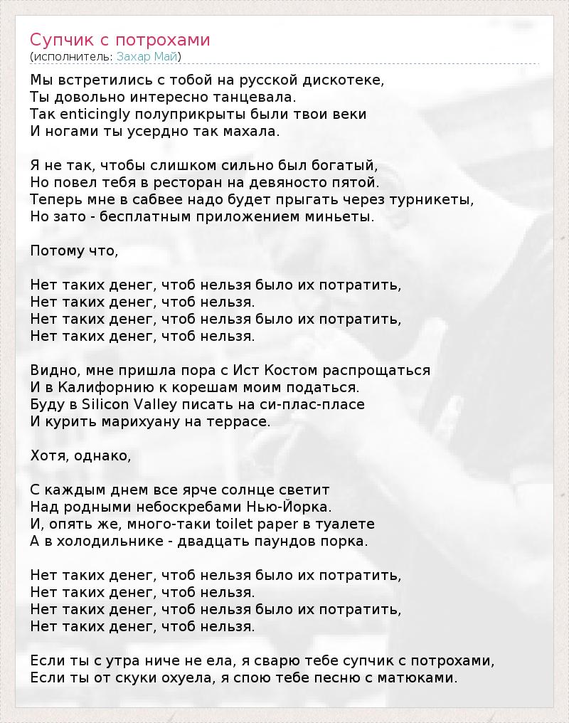 А как ты думаешь, о чем песня "Супчик с потрохами" ?