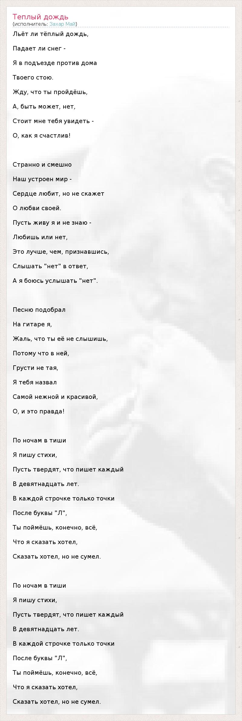 А как ты думаешь, о чем песня "Теплый дождь" ?
