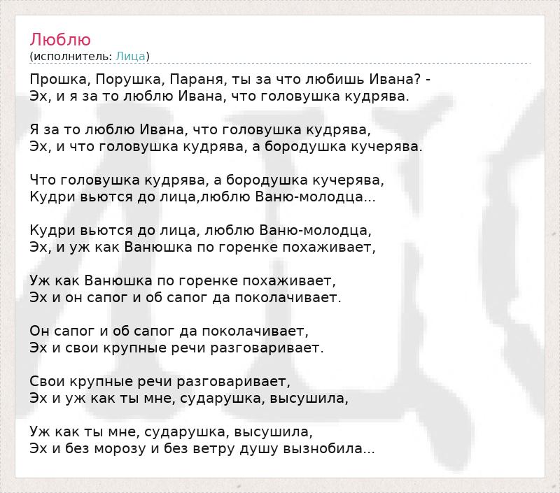 Эх, и я за то люблю Ивана, что головушка кудрява.