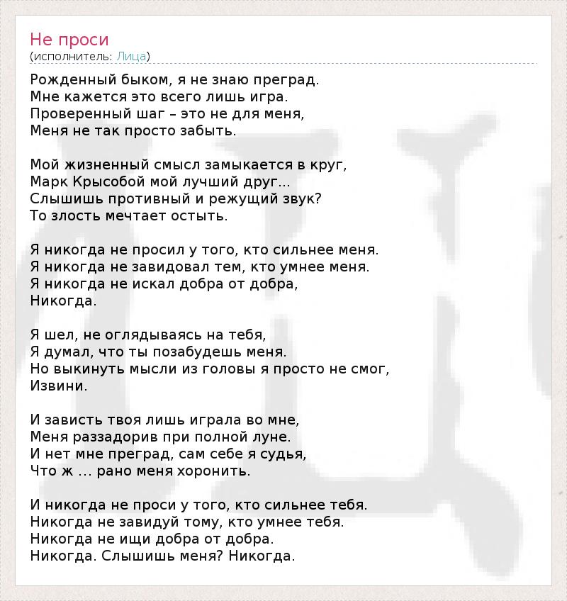 Это интересно:Если вы слушаете хип-хоп группу "Лица" ,просьба тегать так: "Группа Лица".Группа ЛИЦ@ родилась на осколках двух групп: Post Scriptum и Полная Неизвестность.На дворе стояла ранняя осень 2004…Саня «А.А.» Ададуров и Вовчик «Пропан» Добрицкий, а так же Андрей «Зай» Зайцев, решили вместе начать делать качественную, можно даже сказать, профессионально аранжированную, музыку.Пока... продолжение