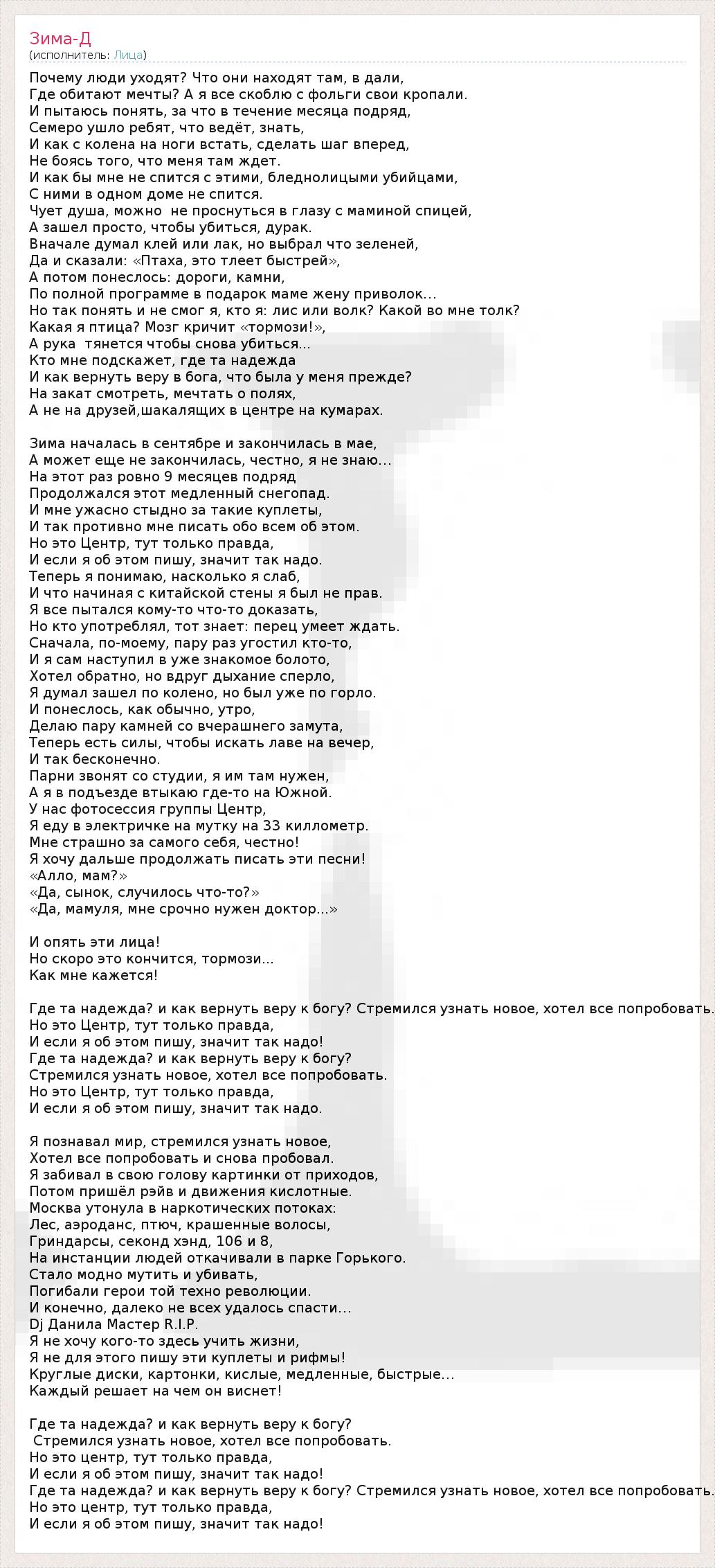А как ты думаешь, о чем песня "Зима-Д" ?