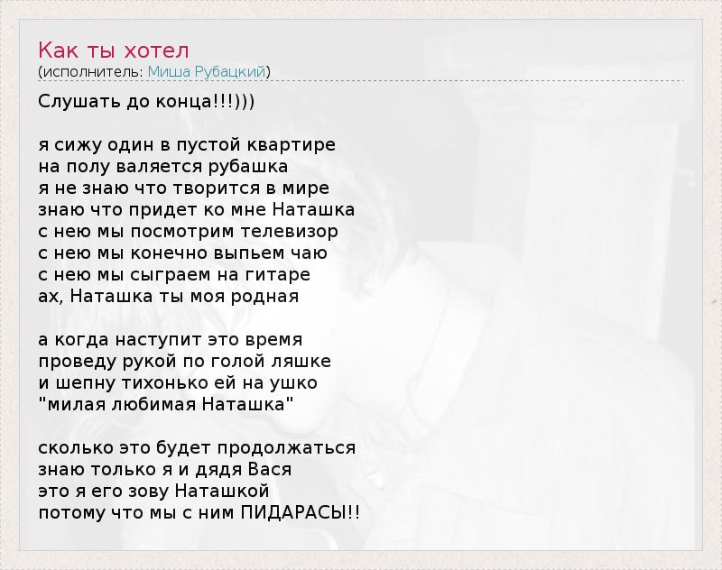 А как ты думаешь, о чем песня "Как ты хотел" ?