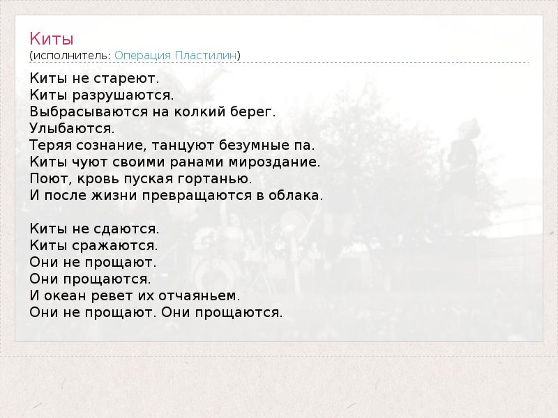 А как ты думаешь, о чем песня "Киты" ?