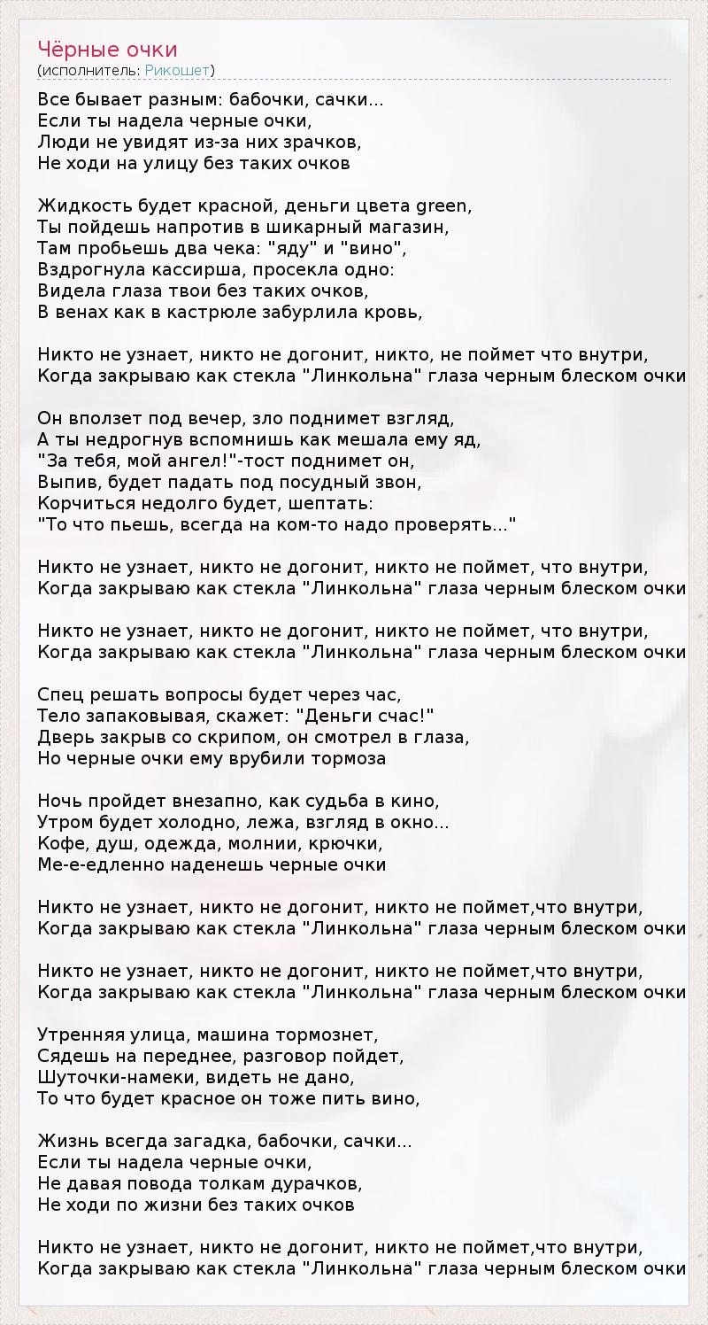 Когда закрываю как стекла "Линкольна" глаза черным блеском очки