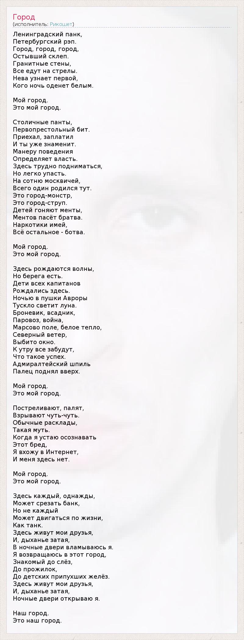 Это интересно:Будущий лидер "Объекта Насмешек" - Рикошет (Александр Аксёнов, родился 3.09.64 в Ленинграде - умер 22.03.07 года, в Санкт-Петербурге) дебютировал в музыке в 1980 году в составе группы, в которую входил его одноклассник Фёдор "Бегемот" Лавров (впоследствии "Народное ополчение", "Бригадный подряд", "Бегемот") и приглашённый гитарист. Их коллектив назывался "Резиновый Рикошет",... продолжение
