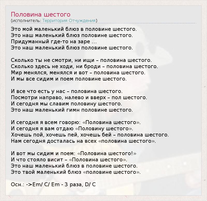 А как ты думаешь, о чем песня "Половина шестого" ?