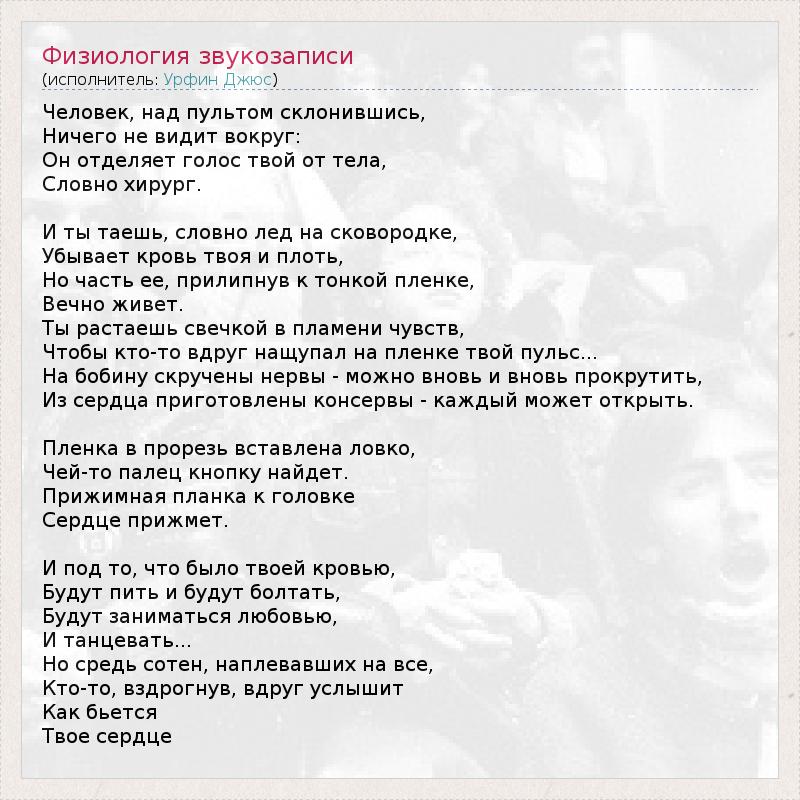 А как ты думаешь, о чем песня "Физиология звукозаписи" ?