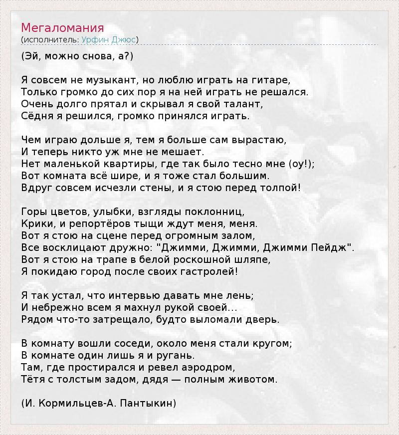 А как ты думаешь, о чем песня "Мегаломания" ?