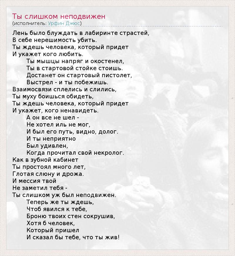 А как ты думаешь, о чем песня "Ты слишком неподвижен" ?