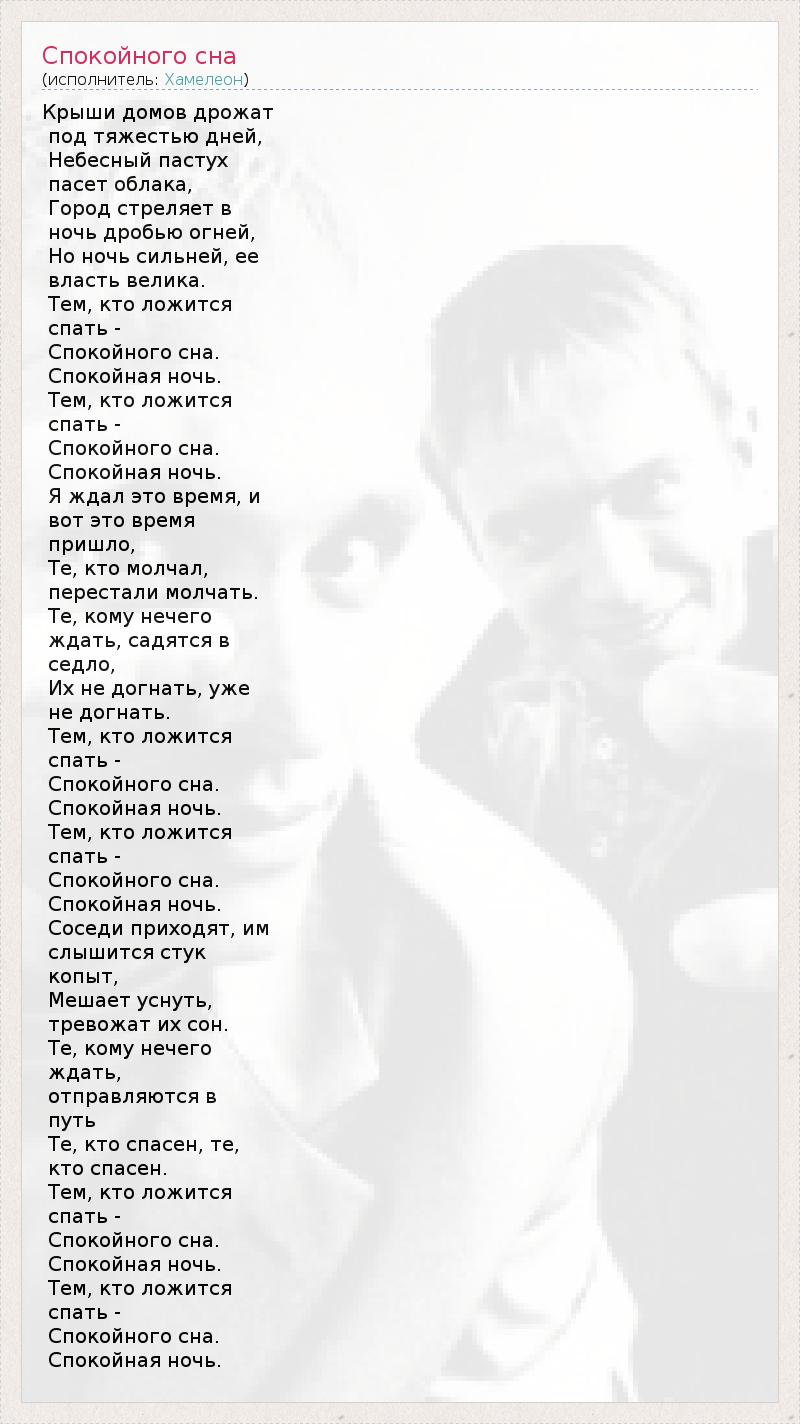ГлавнаяИсполнителиХамелеонСпокойного сна