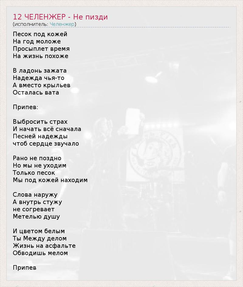 ГлавнаяИсполнителиЧеленжер12 ЧЕЛЕНЖЕР - Не пизди