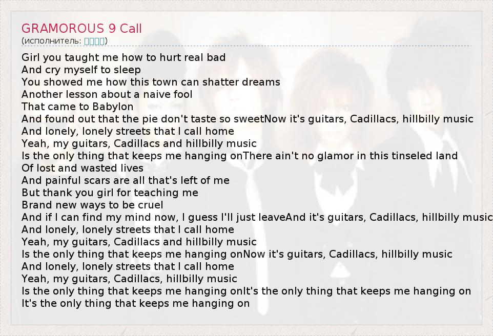 And if I can find my mind now, I guess I'll just leaveAnd it's guitars, Cadillacs, hillbilly music