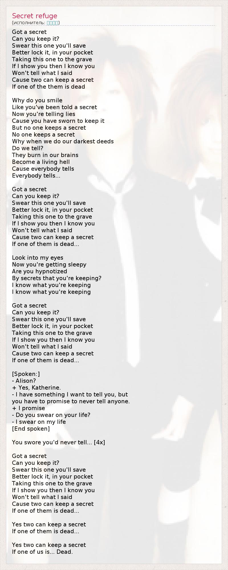 А как ты думаешь, о чем песня "Secret refuge" ?