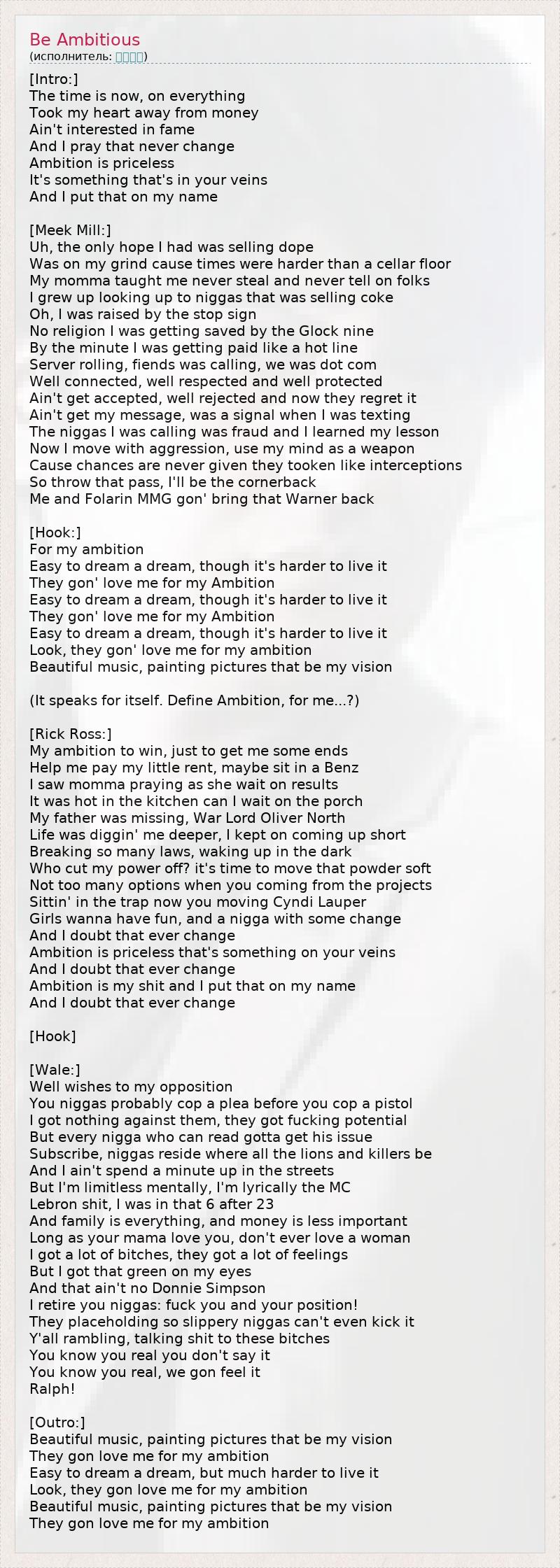 А как ты думаешь, о чем песня "Be Ambitious" ?