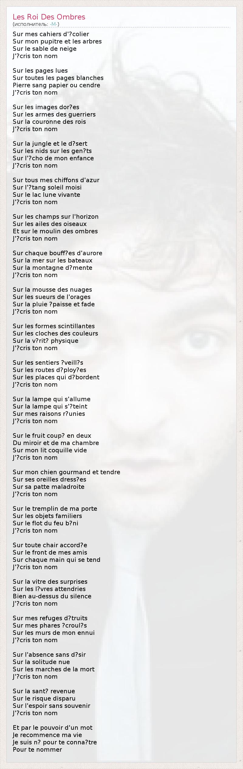 ГлавнаяИсполнители-M-Les Roi Des Ombres