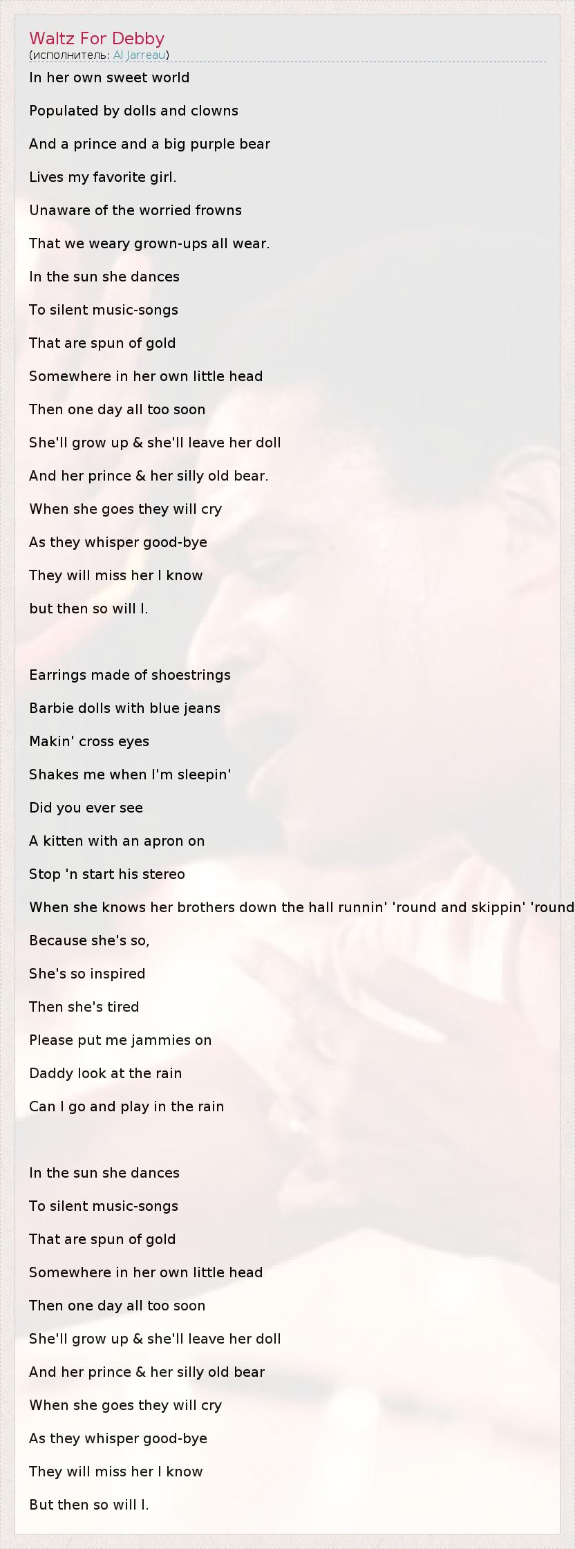 А как ты думаешь, о чем песня "Waltz For Debby" ?