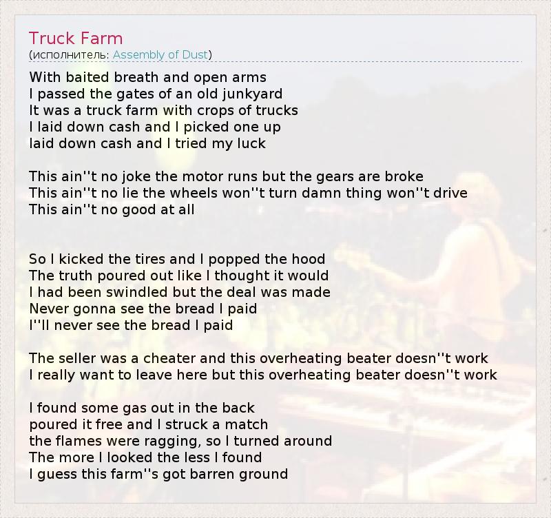 А как ты думаешь, о чем песня "Truck Farm" ?