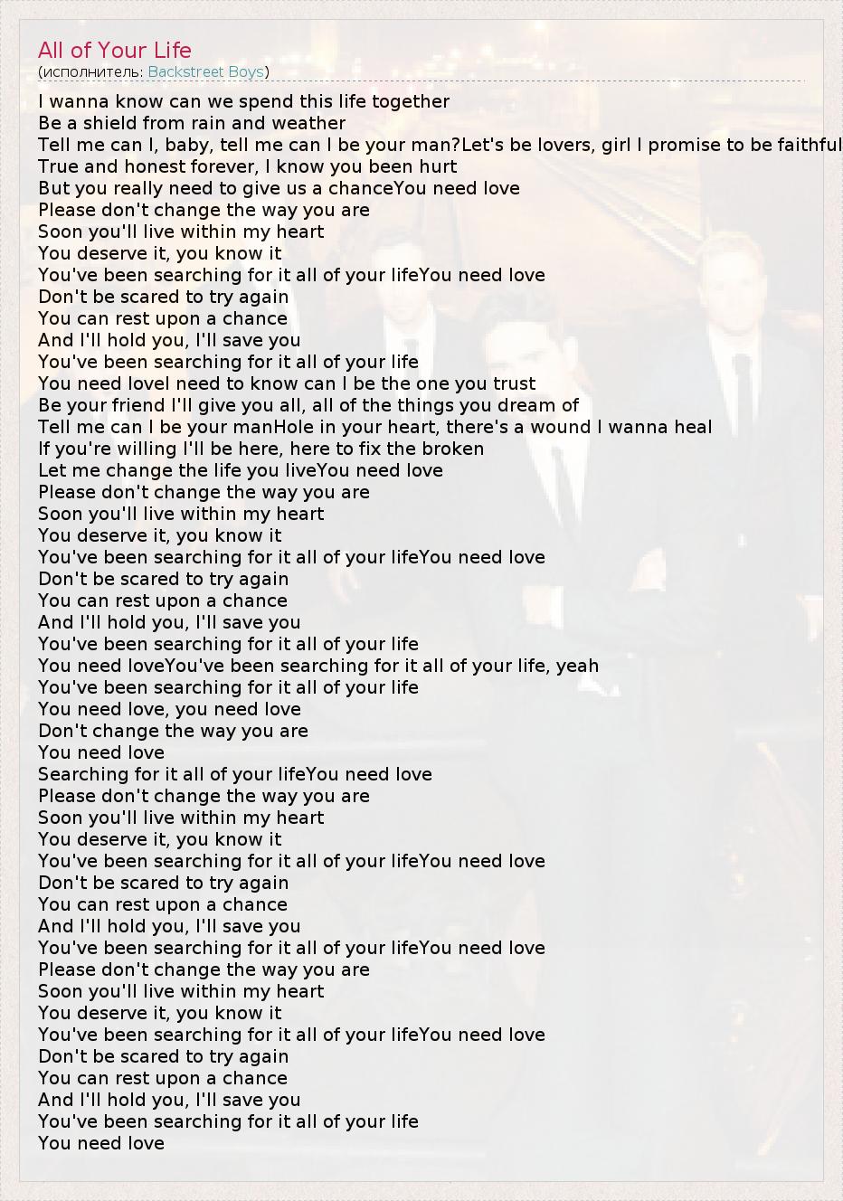 А как ты думаешь, о чем песня "All of Your Life" ?