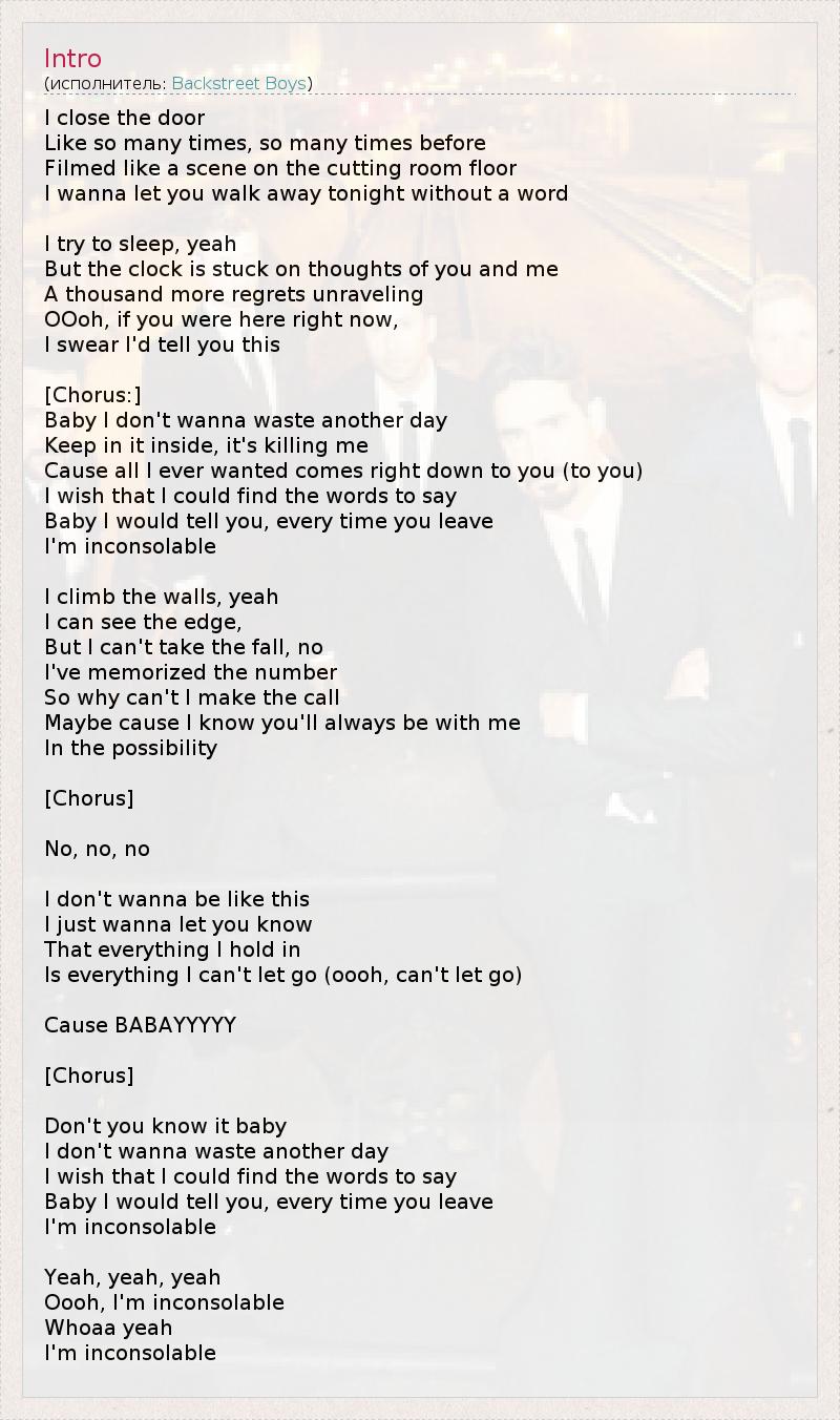 Это интересно:Группа Backstreet Boys образовалась в 1993 году в Орландо, штат Флорида. В состав коллектива вошли Ник Картер (28.01.1980), Эй Джей Маклин (09.01.1978) и Хоуи Доро (Dorough) (22.08.1973), к которым немного позднее присоединились Кевин Ричардсон (03.10.1971) и его двоюродный брат Брайан Литтрелл (20.02.1975). Благодаря помощи бывшего менеджера New Kids On The Block Джонни Райта и его жены Донны, которые стали работать с Backstreet Boys, в 1994... продолжение