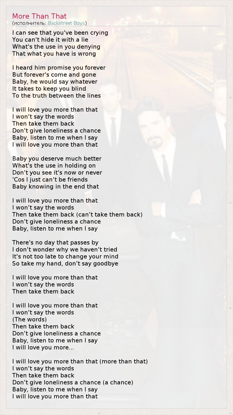 А как ты думаешь, о чем песня "More Than That" ?