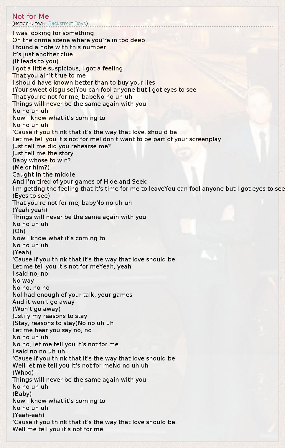 That you're not for me, babyNo no uh uh