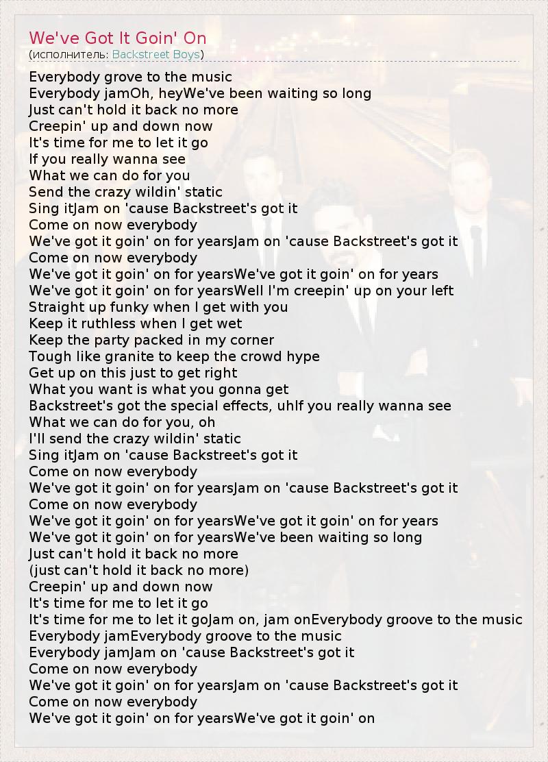 We've got it goin' on for yearsJam on 'cause Backstreet's got it