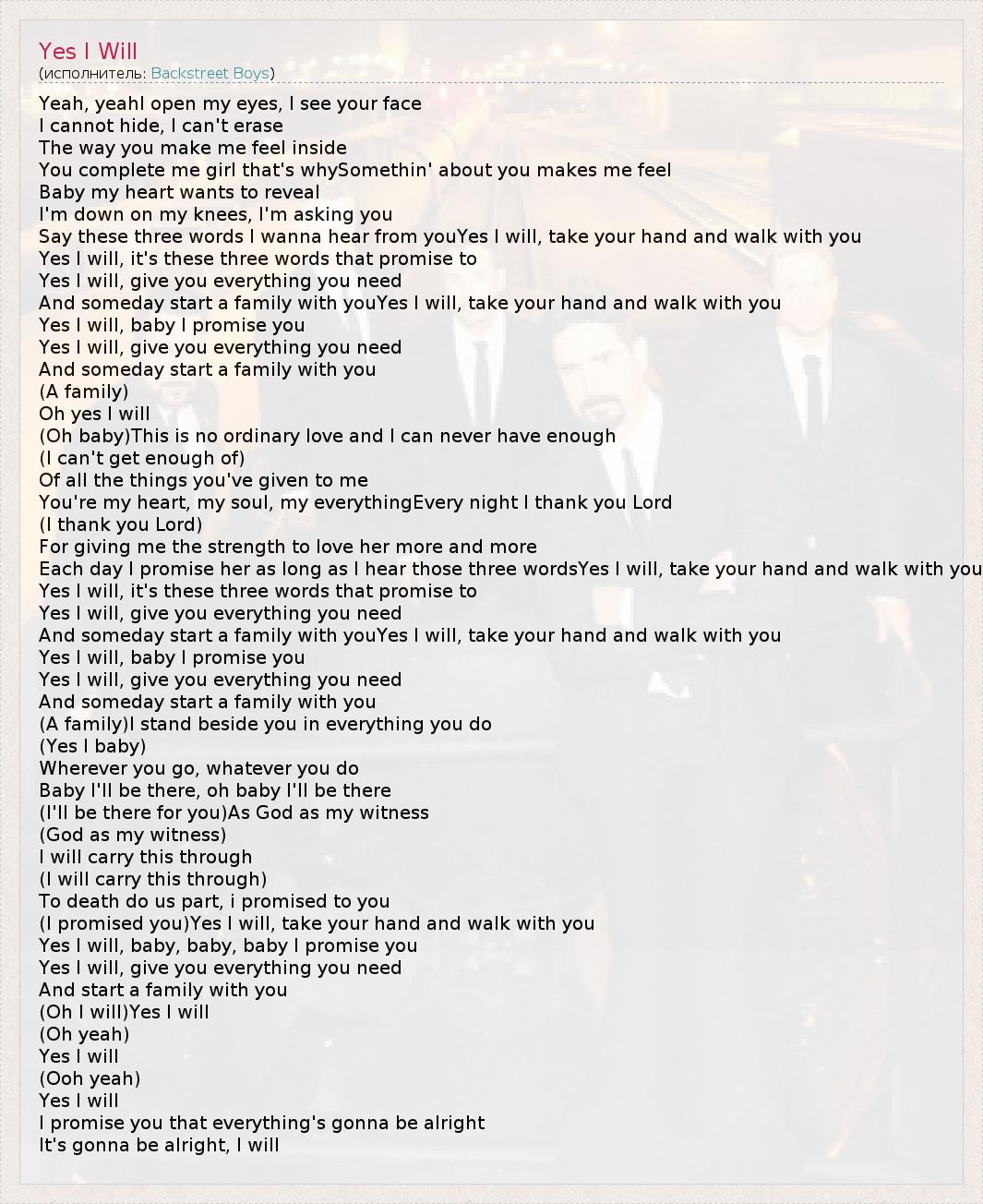 А как ты думаешь, о чем песня "Yes I Will" ?