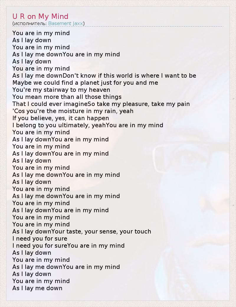 А как ты думаешь, о чем песня "U R on My Mind" ?