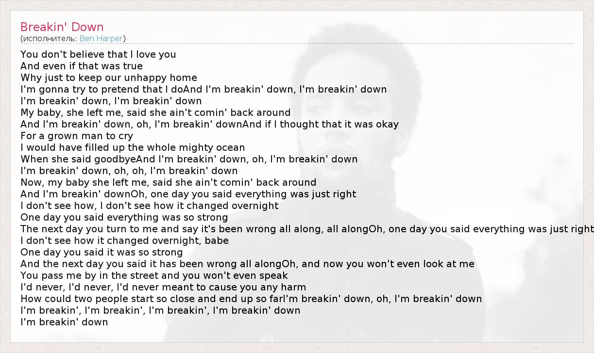 And I'm breakin' down, oh, I'm breakin' downAnd if I thought that it was okay