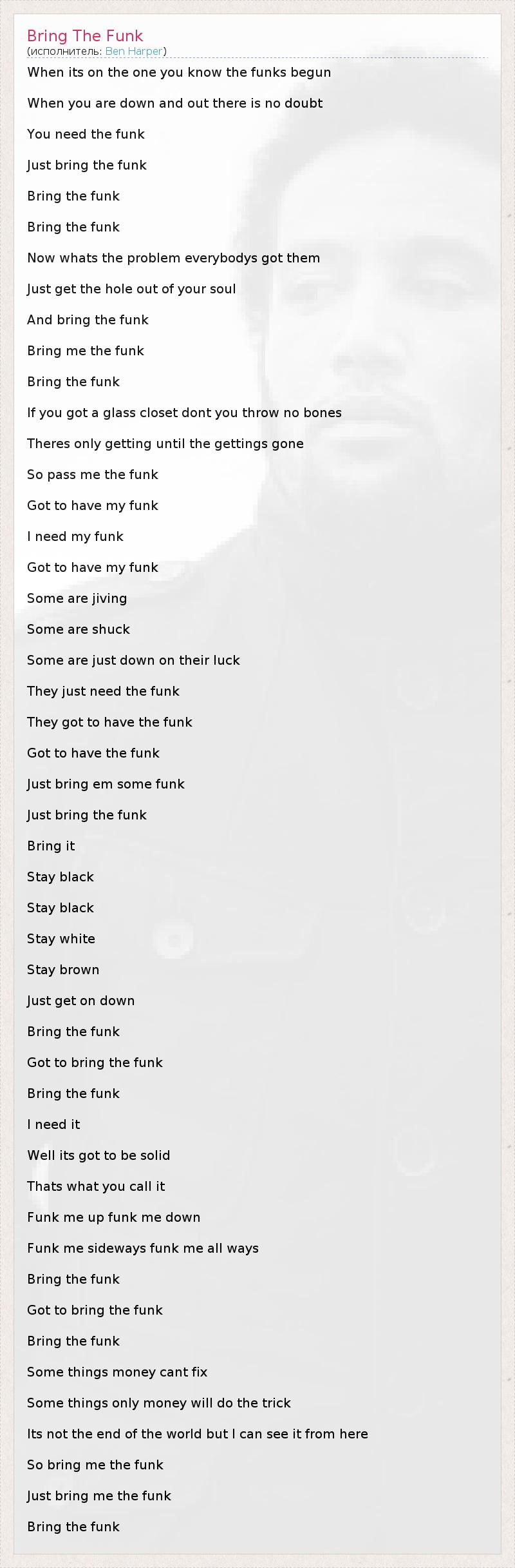 А как ты думаешь, о чем песня "Bring The Funk" ?