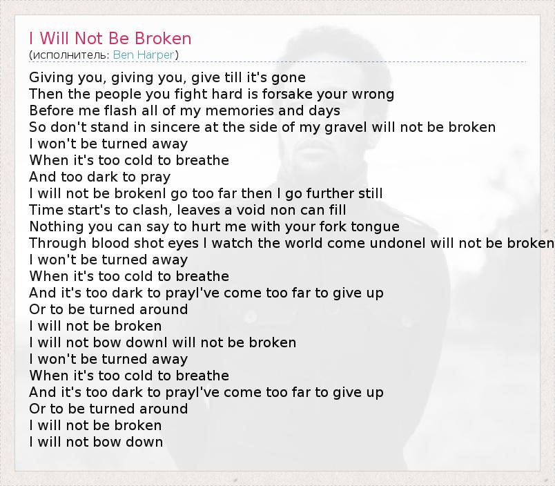 А как ты думаешь, о чем песня "I Will Not Be Broken" ?