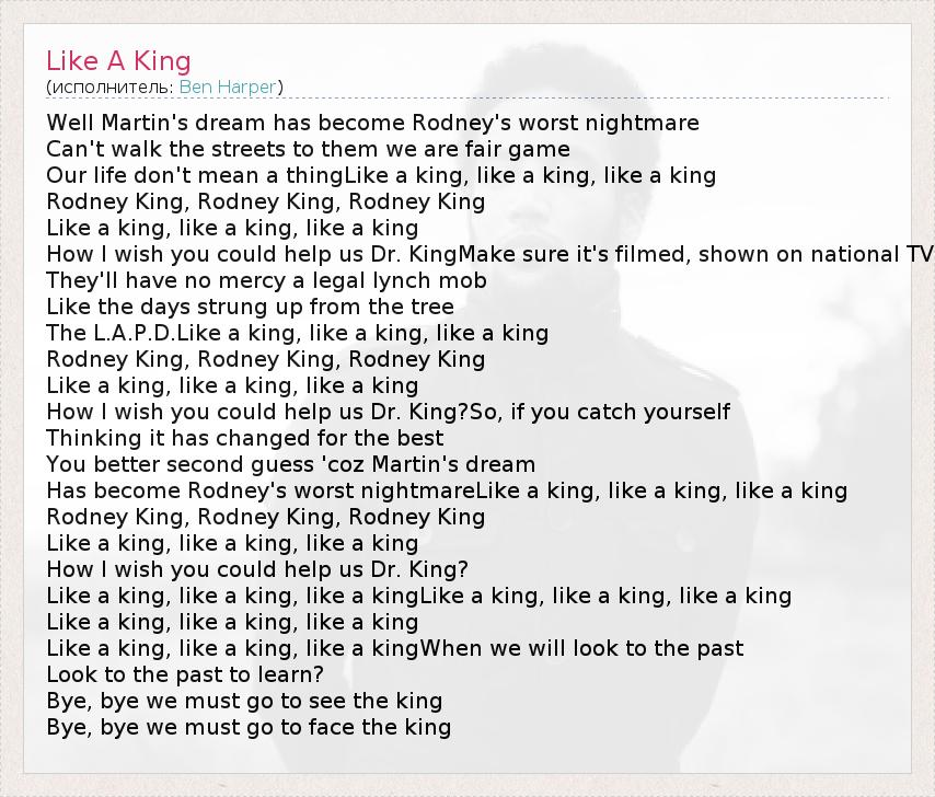 Like a king, like a king, like a kingLike a king, like a king, like a king