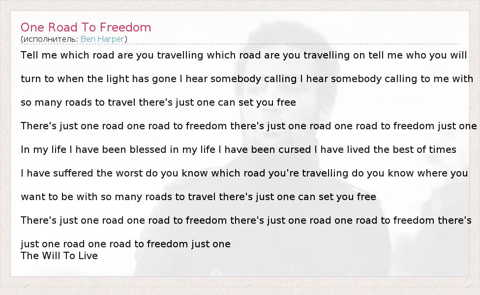 There's just one road one road to freedom there's just one road one road to freedom there's