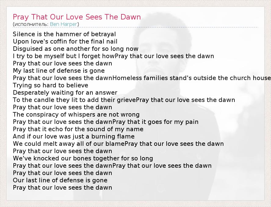 ГлавнаяИсполнителиBen HarperPray That Our Love Sees The Dawn