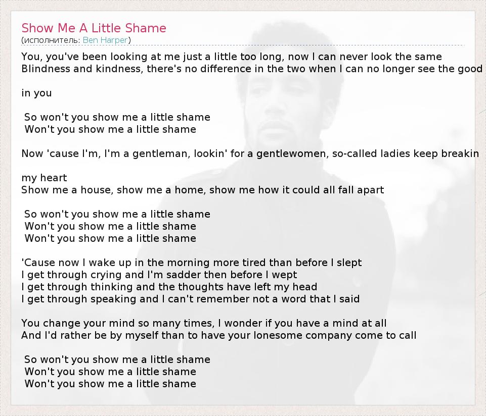 А как ты думаешь, о чем песня "Show Me A Little Shame" ?
