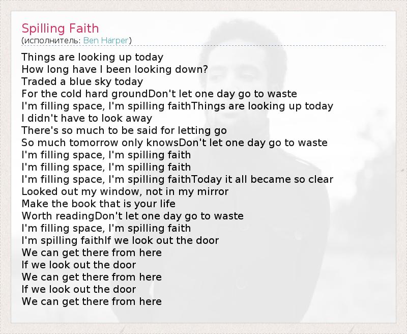 I'm filling space, I'm spilling faith