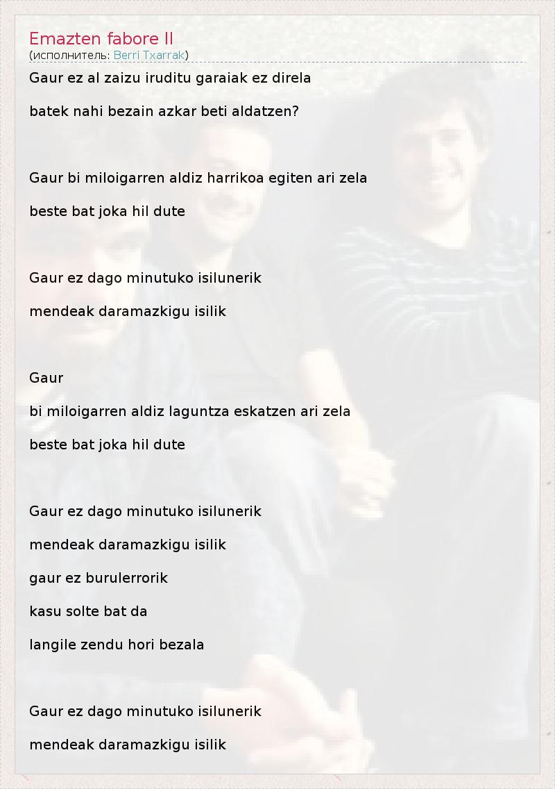 А как ты думаешь, о чем песня "Emazten fabore II" ?