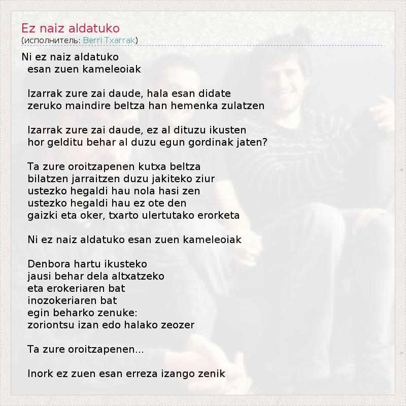 А как ты думаешь, о чем песня "Ez naiz aldatuko" ?