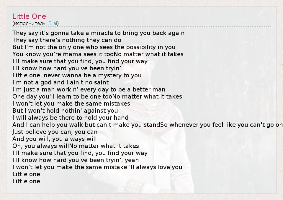 А как ты думаешь, о чем песня "Little One" ?