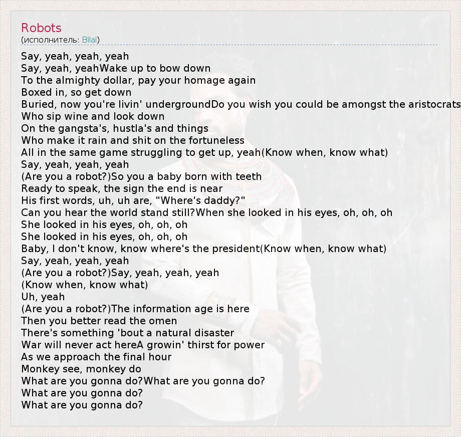 (Are you a robot?)Say, yeah, yeah, yeah