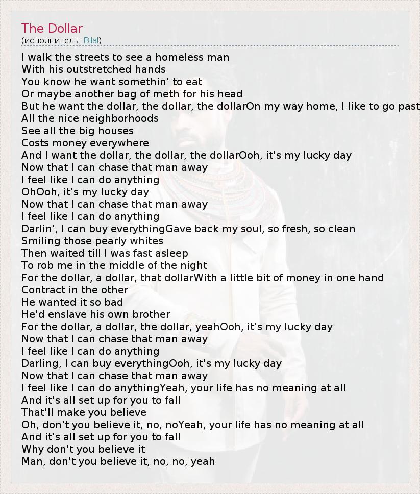 And I want the dollar, the dollar, the dollarOoh, it's my lucky day