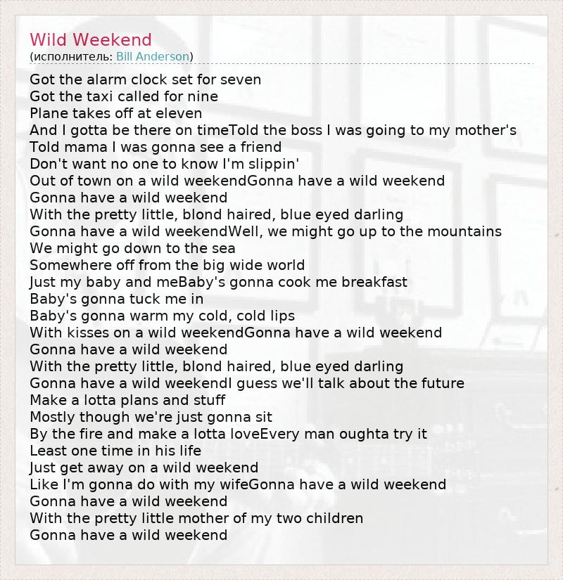 А как ты думаешь, о чем песня "Wild Weekend" ?